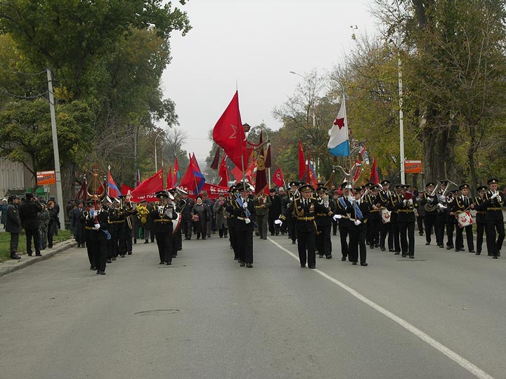 7 октября в Таганроге прошел праздничный парад, организованный местным отделением КПРФ. Как отмечает корреспондент Каспаров.Ru, в этом году парад превратился в настоящий марш протеста.