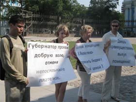 Пикетчики обратились к правительству Петербурга и лично к губернатору с требованием пересмотреть концепцию, признав приоритет социально-экономических задач. Они считают, что постоянный рост арендной платы за нежилые помещения приводит к сокращению сектора малого предпринимательства - со всеми вытекающими последствиями.