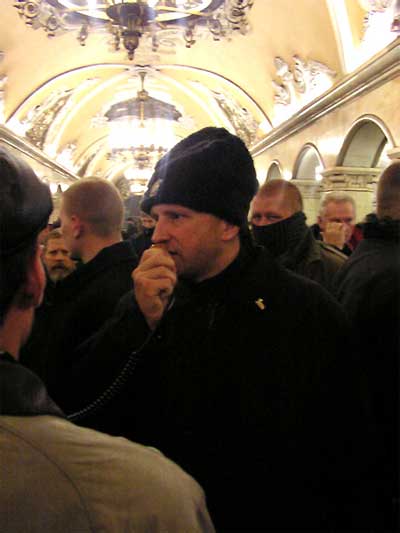 Перед самым концом митинга слово взял лидер ДПНИ Александр Белов, и он же увлек за собой колонну своих сторонников по направлению к метро. Националисты передвигаются полубегом - возможно, из-за относительно низкой температуры на улице. На пути они скандировали лозунги: "Слава России!", "Русские, вперед!", "Смерть оккупантам", международную кричалку "Oi-oi-oi", выбрасывали руки в нацистском приветствии и кричали "Хайль!", сообщает Лента.Ru.