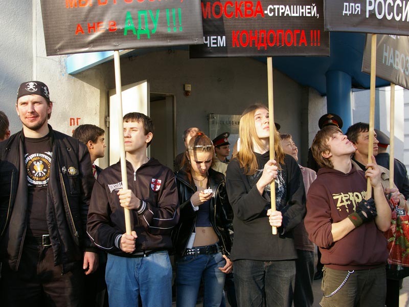 Как сообщил корреспондент Каспаров.Ru, возле музея собралось около 150 человек, которые скандировали: "Вера! Нация! Порядок!", - и держали плакаты "Народ не предавай спасителя. Русский не иуда", " Организаторов "Запретного искусства 2006" под суд ". В акции приняли участие Группа православной молодежи, РОСН, ДПНИ, движение "Память".