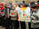 Среди них бывшие заложники, их родственники, политики, журналисты, московские школьники и простые граждане. Многие плакали. Школьники держали плакаты с надписями "Нет террору", "Нет терроризму", на которых изображены шахидка, либо горящее здание и силуэт человека с автоматом.