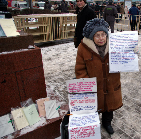 После Зюганова выступили руководители партийных ячеек КПРФ. С трибуны звучали лозунги: "Даешь народу право на жизнь", "Зюганова в тренеры".