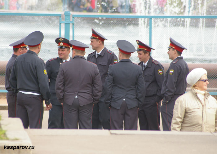Фонтан Дружбы народов был взят под охрану милиции с самого утра 9 мая, так как накануне организаторы несанкционированной властями акции заявили о своем намерении ее провести. По периметру фонтан охраняли десятки милиционеров, дежурил также милицейский микроавтобус.