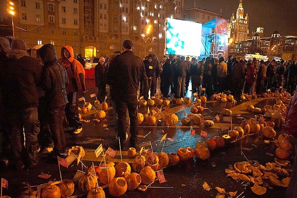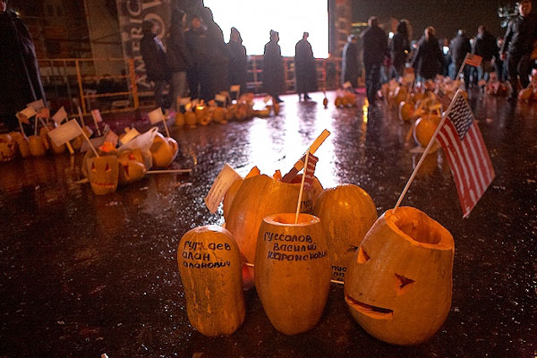 На прошедшей 2 ноября антиамериканской акции активисты движения "Наши" принесли несколько тысяч тыкв, в которые были воткнуты американские флажки с именами реальных людей, которые, по мнению движения "Наши", погибли "из-за развязанных Америкой конфликтов". Среди этих тыкв оказалась и тыква с именем Руслана Ямадаева — убитого 24 сентября в Москве экс-депутата Госдумы, брата бывшего командира батальона чеченского спецназа "Восток". Эта фотография Мити Алешковского размещена в "Живом журнале" Ильи Барабанова.