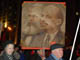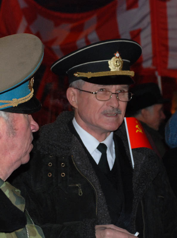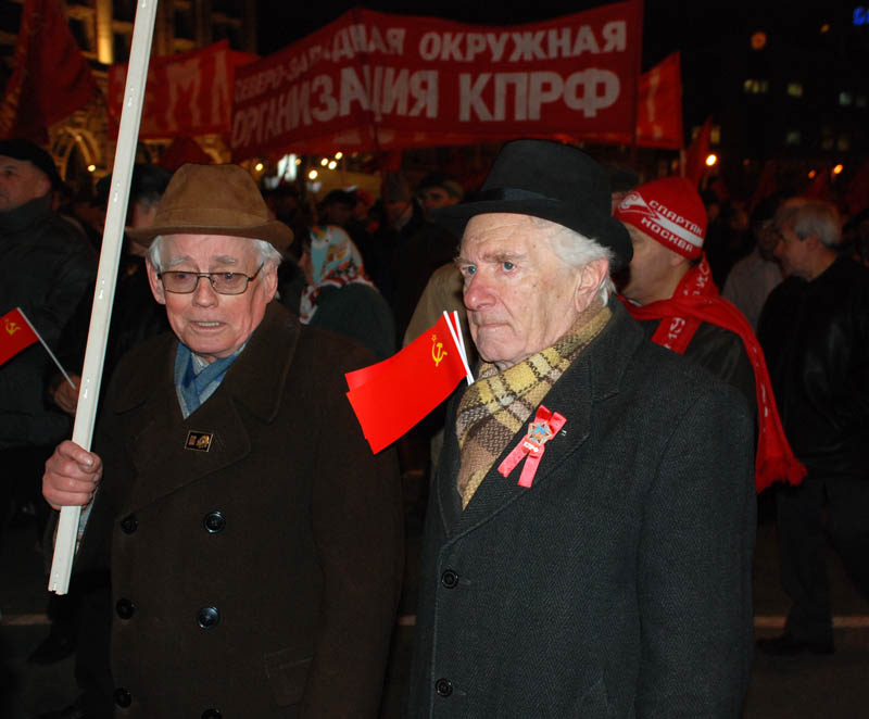 По ходу движения от Пушкинской площади до Театральной площади, где около памятника Карлу Марксу состоялся праздничный митинг-концерт, коммунисты скандировали: "Буржуев на нары, рабочих на Канары", "Ленин, партия, комсомол", "Ленин – революция, Сталин – победа", "Земля - крестьянам, фабрики – рабочим". Многие держали советские флаги и портреты Владимира Ленина и Иосифа Сталина.