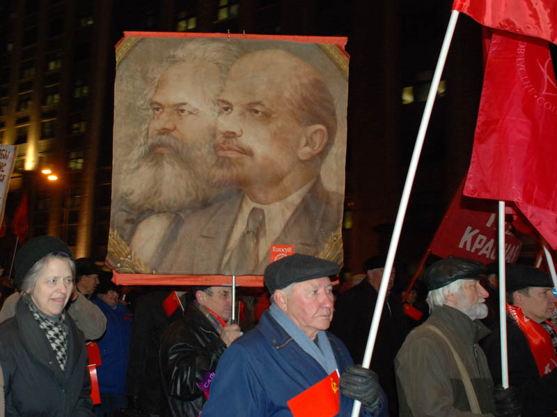 Выступавшие на митинге-концерте первые секретари региональных отделений КПРФ поздравили всех собравшихся с праздником. Лидер КПРФ Геннадий Заганов в своем выступлении, которое затронуло проблемы финансового кризиса, посоветовал "капиталистам внимательно читать "Капитал" Маркса".