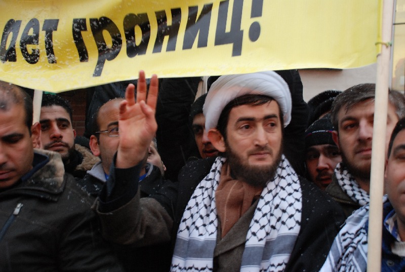 После этого около 20 человек развернули на снегу напротив здания посольства молитвенные коврики и совершили намаз, а затем участники акции принялись нараспев читать суры из Корана.