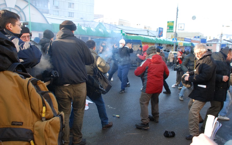 Нападение удалось отбить, однако несколько "несогласных" были задержаны: фотокорреспондент Алескей Касьян, активист ОГФ Владимир Ионов, депутат муниципального собрания района Отрадное Владимир Вельмакин (отпущен сразу после задержания), координатор "Обороны" Эдуард Глезин, активист "Смены" Станислав Яковлев, активисты ОГФ Ирина Набатова и Ида Милославова. Они доставлены в ОВД "Якиманка".