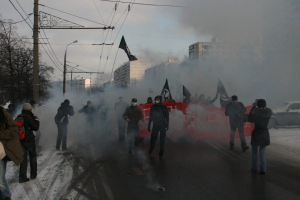 С половины одиннадцатого утра в районе площади Амилкара Кабрала на юго-востоке Москвы стали собираться национал-большевики – на марш в память об убитом 14 января Антоне Страдымове. В 11:30 примерно полсотни нацболов построились в колонну на Вешняковской улице и двинулась в сторону метро "Выхино", возле которого был убит Антон. Хотя некоторые журналисты поторопились окрестить "Выхинский марш" "траурным", это была не слезливая панихида, а прекрасная и яростная тризна. Наша колонна прошла по Вешняковке с развевающимися знаменами, под бодрые лозунги "Кровь за кровь!", " Червочкин… Страдымов... Золотарев… Бурыгин… Соков… Волков… Нефедов … – В СТРОЮ!".