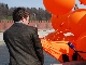 Под текстом была подпись и эмблема движения "Солидарность". К самому баннеру были прикреплены оранжевые воздушные шары.