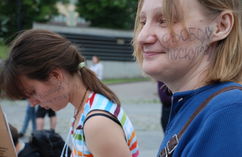 Некоторые участники на своих лицах написала "Свободу Лоскутову".