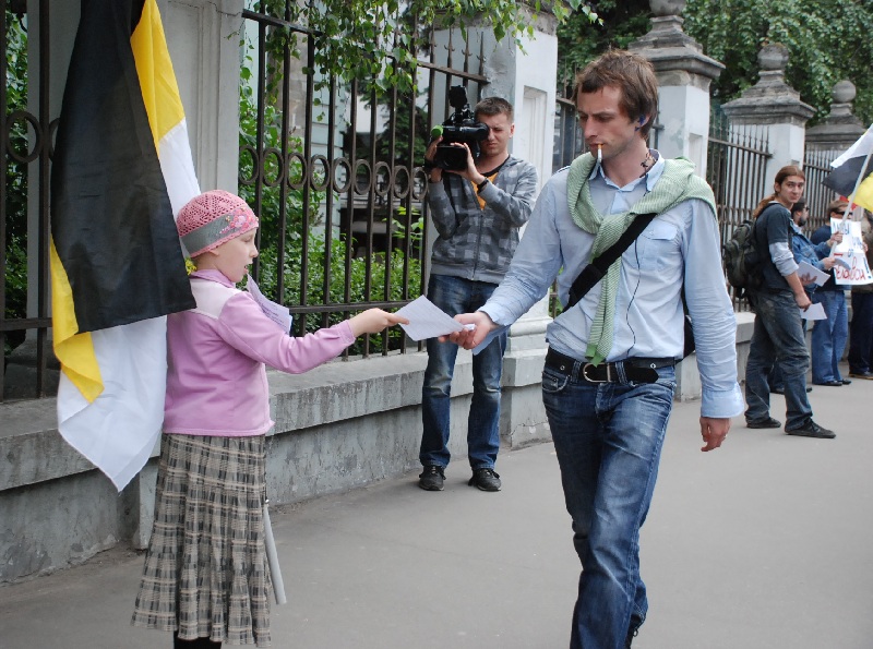 "Мы считаем Белоруссию самым близким и надежным естественным союзником России и русского народа", — говорилось в листовках, которые участники пикета раздавали прохожим.