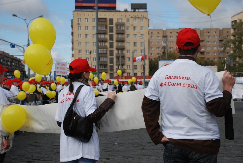 Во время митинга около 150 обманутых соинвесторов выпустили в небо воздушные шары, символизирующие улетающие надежды. Более тысячи семей, которые купили квартиры в десяти домах "Солнцеграда", остались без крыши над головой.
