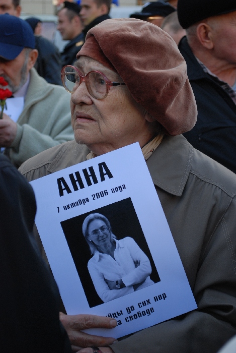 Людмила Алексеева в своем выступлении выразила надежду, что убийцы Анны Политковской будут найдены. "Мы дождемся, вернее, вы дождетесь, когда их осудят", – сказала она. По ее мнению, власть помогает убийцам Политковской прятаться от суда.