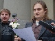 В Москве 21 октября, в первый день заседания городской думы в новом составе, гражданские активисты поздравили депутатов фракции "Единая Россия" с "безоговорочной и честной победой" на выборах, сообщает корреспондент Каспаров.Ru.