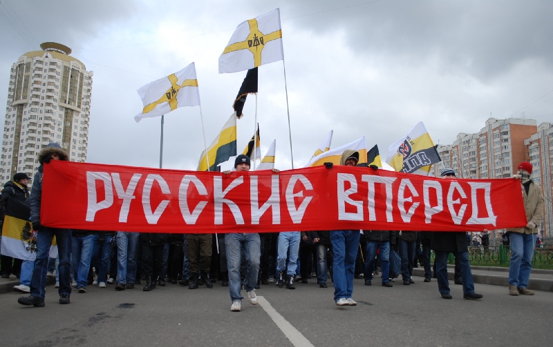 Участники скандировали лозунги: "Россия — русский порядок!", "Россия — русская власть!", "Слава России!"
