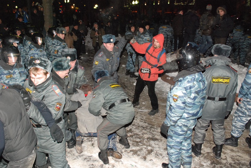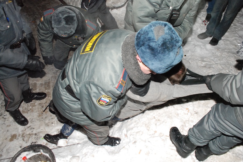 Добавим, сотрудники милиции силой оттесняли людей в метро. В самом же метрополитене, на станции "Чистые пруды", милиционеры в грубой форме задерживали молодых людей, возвращавшихся с пикета, чтобы проверить их документы.