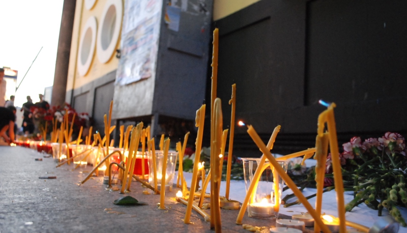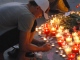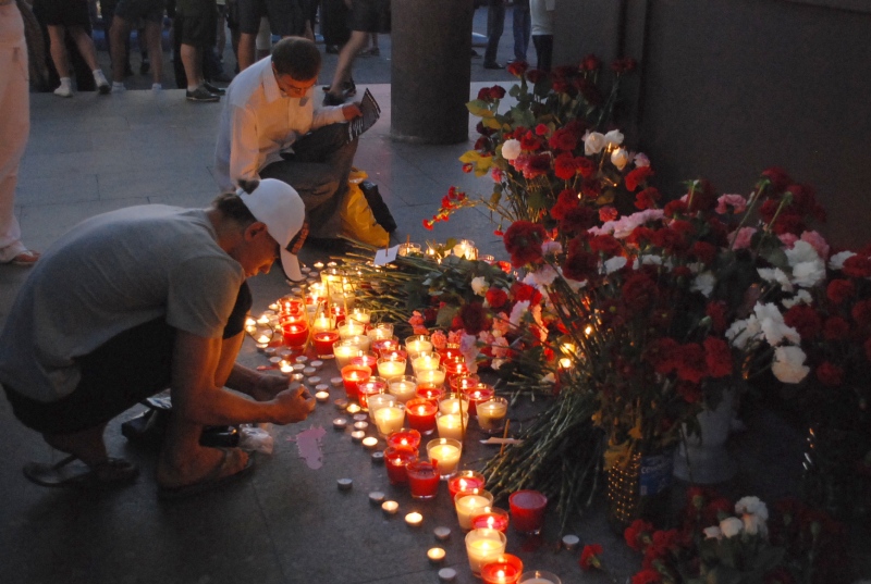 Молодые люди возложили цветы у стен метрополитена и зажгли свечи.