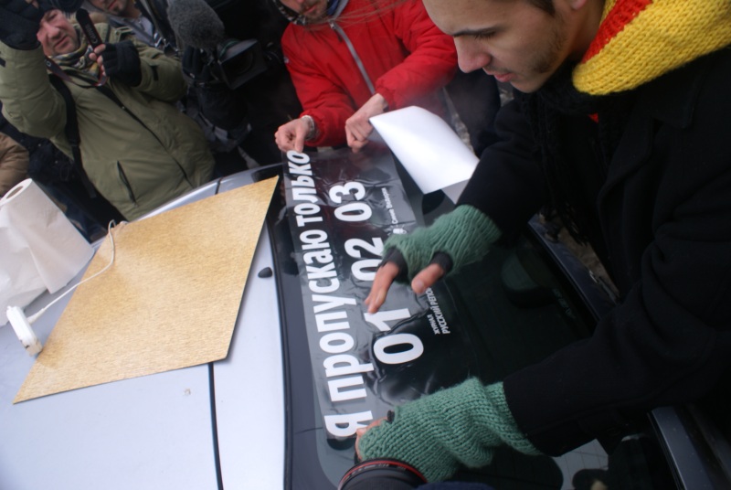 В Москве 25 февраля стартовала акция автомобилистов против "мигалок" под лозунгом "Я пропускаю только 01 02 и 03", оранизованная обществом "Синих ведерок" совместно с журналом "Русский репортер". Как передает корреспондент Каспаров.Ru, кампания началась на Воробьевых горах с раздачи стикеров для машин с текстом лозунга.