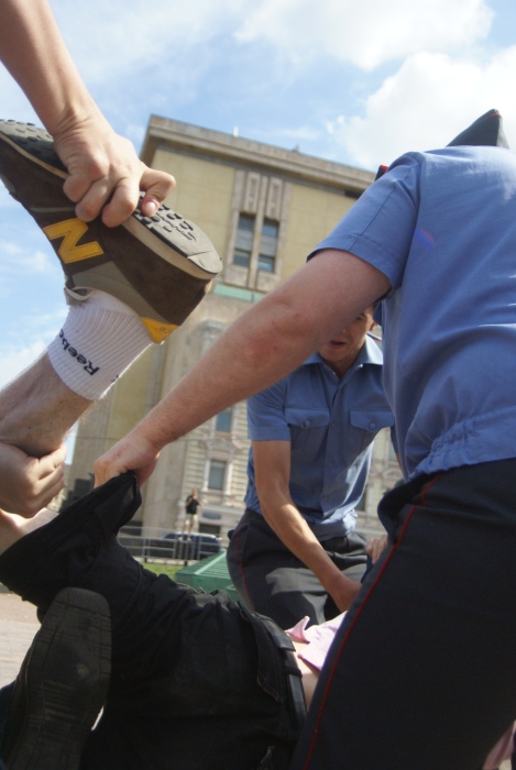 В Москве на Лубянской площади сотрудники правоохранительных органов задержали 21 участника сидячей забастовки в поддержку политзаключенной Таисии Осиповой у Соловецкого камня. Об этом 20 июля сообщает корреспондент Каспаров.Ru с места событий.
