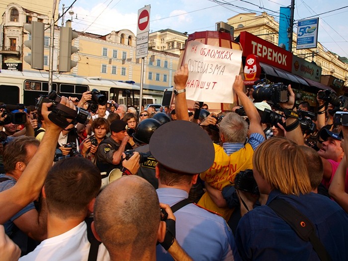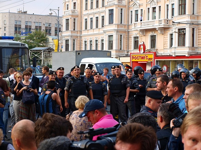 Всего в Пресненское ОВД было доставлено 10 человек: член политсовета "Солидарности" Олег Козловский, активист ОГФ Владимир Ионов, другороссы Тимофей Ковалев, Марат Салахиев и Сергей Тихонов.