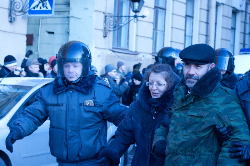 Как сообщили Каспаров.Ru сторонники лидера петербургского ОГФ Ольги Курносовой, она вместе с националистом Николаем Бондариком и группой товарищей была задержала через 15 минут после начала акции.
