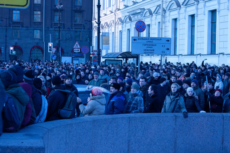Всего, по оценкам СМИ, в акции против Путина в Петербурге принимали участие порядка 3,5 тысяч человек. В свою очередь ГУВД сообщило лишь о 800 митингующих. При этом в полиции сообщили о 480 задержанных.