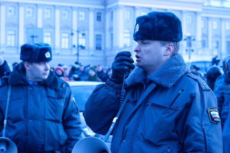 Около 20:00 на Исаакиевскую площадь пригнали спецмашины для уборки улиц, которые нарезали круги вокруг памятника Николаю I. несколько раз эти машины выезжали на тротуар якобы для уборки, но горожане не расходились, а лишь отходили в сторону.