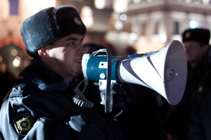 Полиция периодически оцепляла небольшие группы людей у тротуаров, задерживала их и возвращалась в центр площади.