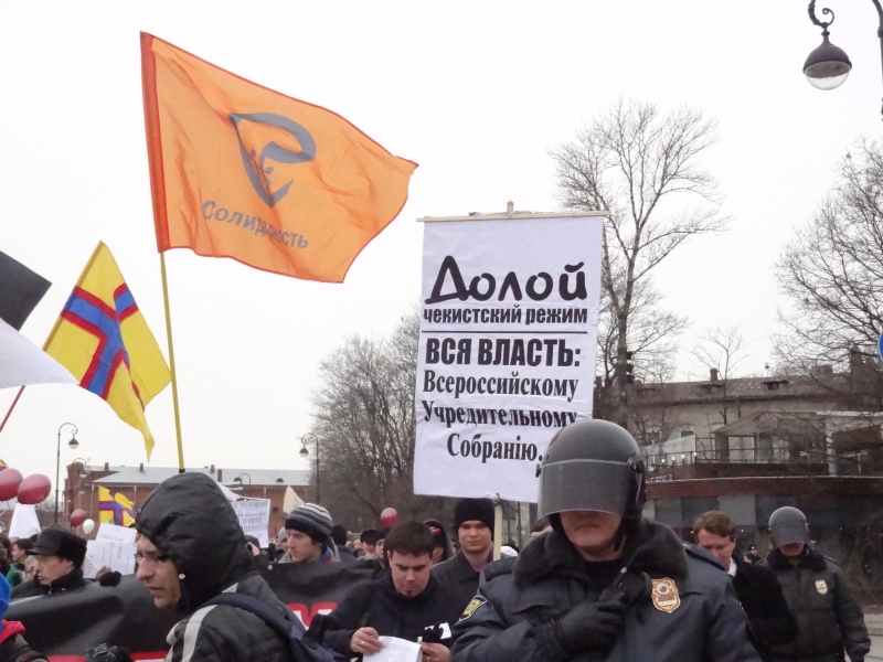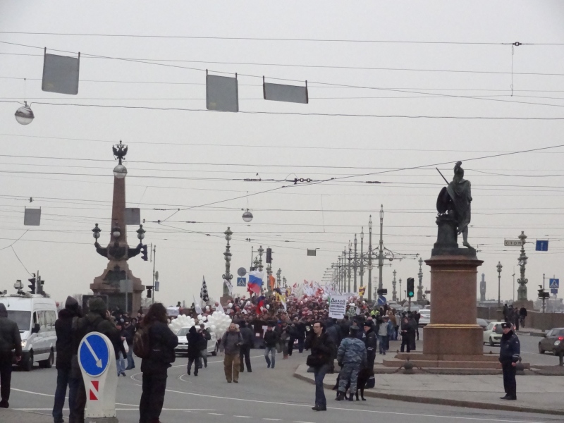 В Петербурге прошли шествие и митинг "За честные выборы". В них участвовали не менее 3 тысяч человек. Главный транспарант шествия — "Третий срок — тюремный". Об этом 24 марта сообщает корреспондент Каспаров.Ru.