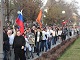 Шествие вернулось к штабу Шеина, люди стоят у штаба, поют "Вставай, страна огромная" и не уходят.