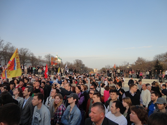 В Астрахани прошел митинг в поддержку экс-кандидата в мэры города Олега Шеина и его сторонников. Около 5000 человек прошли по городу, оцепленному полицией, передает корреспондент Каспаров.Ru 14 апреля.