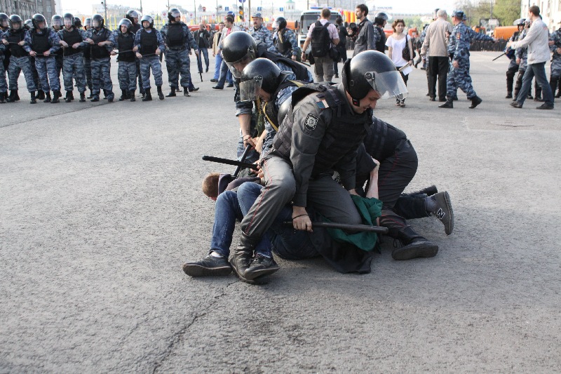 Участники "Марша миллионов" прорвали полицейский кордон и устремились поддержать забастовку Навального, Немцова и Удальцова, передает 6 мая корреспондент Каспаров.Ru.