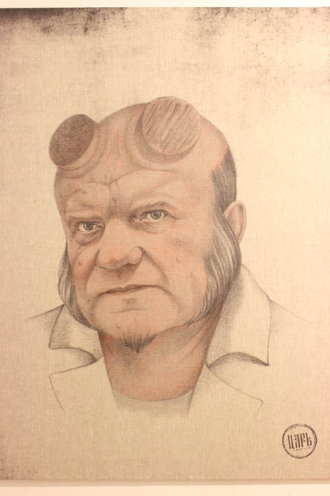 На выставке были представлены двадцать работ, выполненных в технике графики. На картинах изображены известные личности, начиная от Папы Римского в образе Джокера и заканчивая Муаммаром Каддафи в образе капитана Джека Воробья.