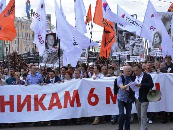 В Москве прошел "Марш против палачей". Целью акции была поддержка фигурантов "болотного дела" и других политзаключенных.
