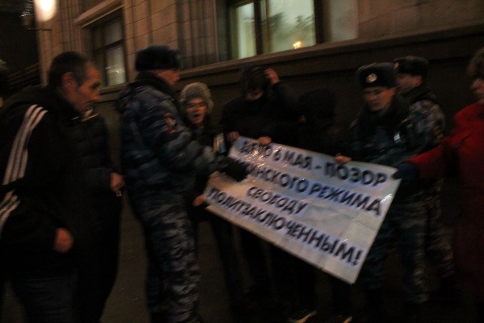 6 декабря прошли две несанкционированные акции с требованием освободить узников "болотного дела". У Государственной думы и на Манежной площади. Полиция задержала более 40 человек. Один из задержанных Алексей Кондратьев был отпущен после предъявления пресс-карты. Задержаные доставлены в отделы полиции: "Тверское", "Басманное" и "Китай-Город".