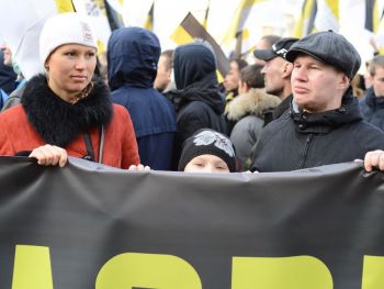 Тем временем от станции метро Октябрьское поле до Щукинской проходил "Русский марш за Новороссию". К участию в акции призывал бывший полевой командир Игорь Стрелков (Гиркин). В самый последний момент он отказался выходить на шествие, сославшись на расхождения в отношении к российской власти с формальным организатором мероприятия. На эту акцию, по оценке столичной полиции, пришло 1,5 тысячи человек.