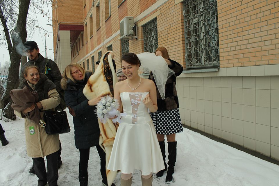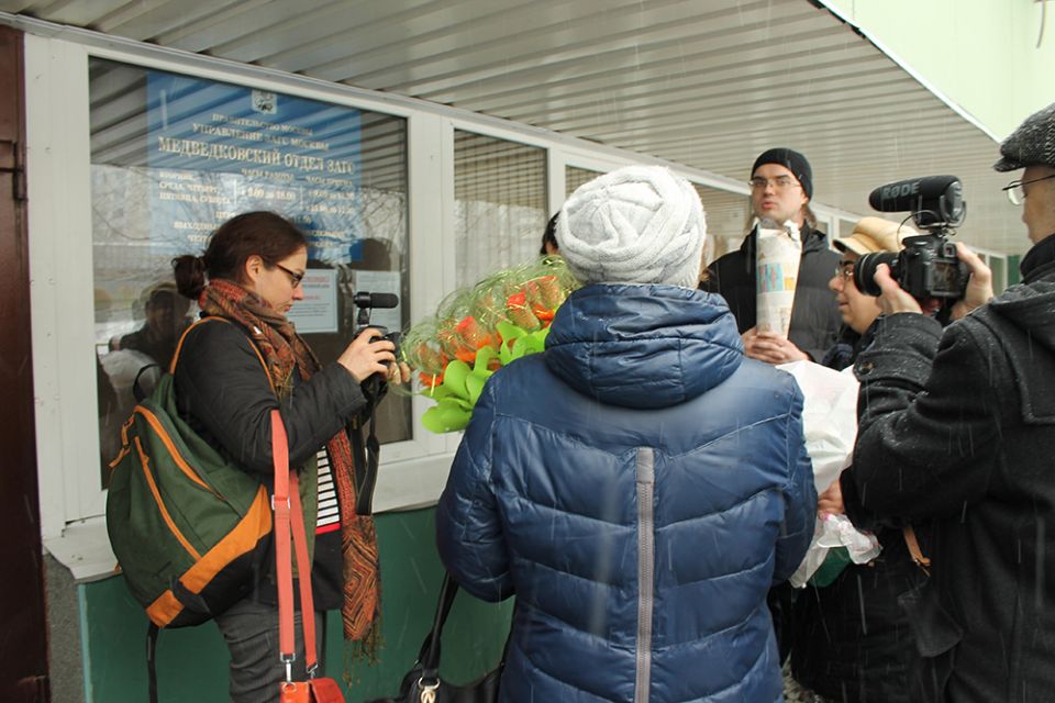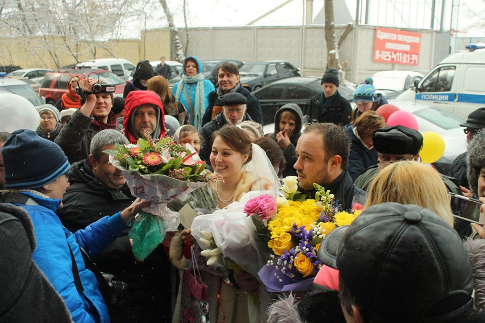 В московском СИЗО "Медведь" 25 февраля поженились политзаключенный Ильдар Дадин и журналист Анастасия Зотова. Чтобы бракосочетание стало возможным, невеста собирала необходимые документы несколько месяцев. О необходимости получить последнюю бумагу — допуск в СИЗО — ей сообщили лишь за день до свадьбы. "Я очень волнуюсь, что меня не пустят", — призналась Анастасия пока ждала, когда ее позовут сотрудники изолятора. "Мы женимся, это один раз в жизни. Я люблю Ильдара", — добавила она. К счастью, проблем не возникло.