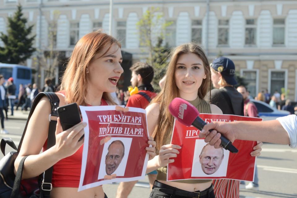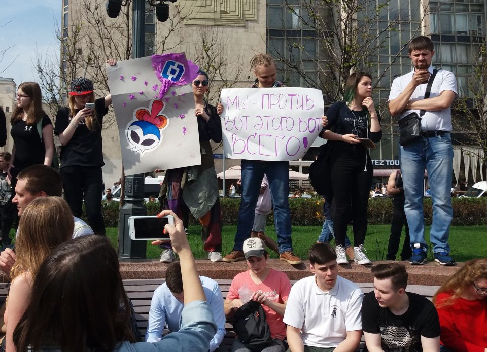 Навальный призвал своих сторонников и всех несогласных с "переизбранием" Владимира Путина выйти на Пушкинскую площадь. Уже в 13:30 атмосфера на площади была давящей: жара, духота, противостояние казаков и нодовцев с начинающими собираться свободными гражданами. На подступах сотрудники полиции обыскивали подростков и требовали документы.