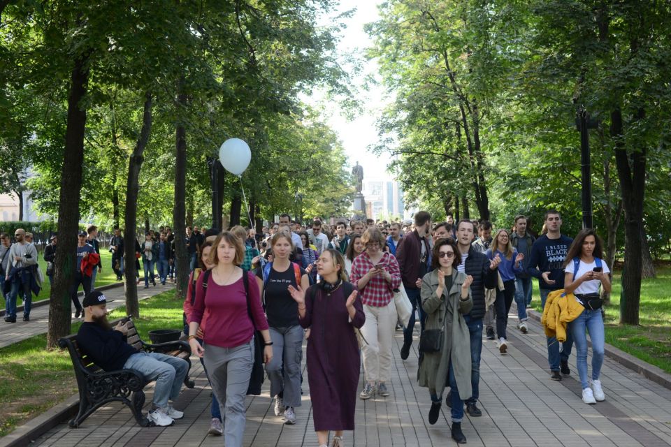 В Москве 3 августа состоялась прогулка по Бульварному кольцу в поддержку независимых кандидатов.