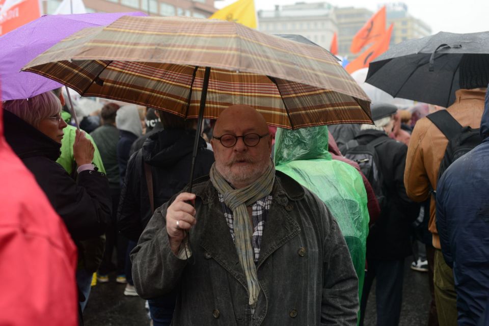 Веселый и бойкий августовский "Допускай" сменил печальный сентябрьский "Отпускай". На проспект Сахарова 29 сентября вышли 25 тысяч человек. Так сказал "Белый счетчик". Неожиданно близкими оказались цифры от МВД — 20 тысяч. Да, народу меньше, нежели 10 августа, но 50-60 тысяч сейчас вообще редко выходят. И с погодой не повезло. Не мороз, конечно, но пронизывающий ветер и моросящий дождь оптимизма не добавляли.