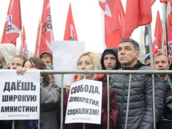 Еще перед митингом приятные молодые ребята раздавали плакаты с лицами фигурантов "московского дела". Кто-то пришел со своими плакатами: большими транспарантами и маленькими листочками с написанным от руки текстом. Возле сцены столпились члены разных партий: рядом с представителями левых движений мирно соседствовали либертарианцы. Традиционно развивались флаги "Солидарности" и "Яблока".