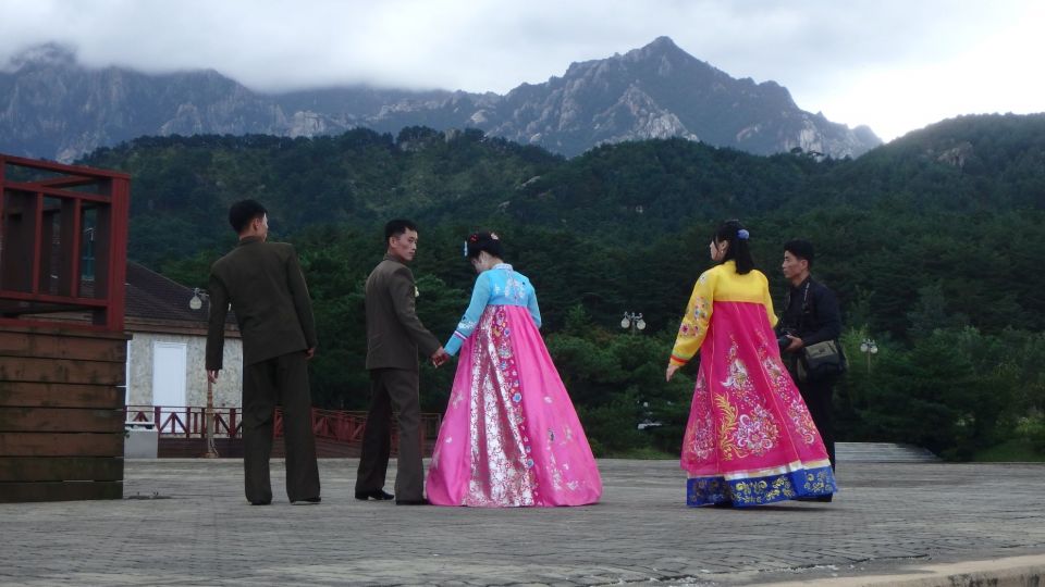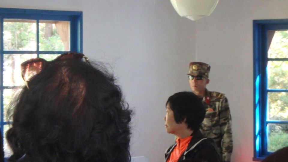 О едином государстве, называемом Кореей, нужно сказать особо. На вопрос, сколько корейцев живет в стране, звучит ответ, ставящий в тупик рядового европейца. Да, в отличие от советского и российского исторического опыта, или опыта разделенной после войны Германии, ответ звучит так — примерно 80 миллионов! То есть цифра складывается из приблизительно 30 миллионов граждан Северной Кореи, 40 миллионов граждан Южной Кореи и ещё примерно 10 миллионов корейцев, разбросанных историей в Китае, России, США, и других странах мира. Думаю, читатель со мной согласится, такой подсчет непривычен для тех, кто приучен в ХХ веке четко делить не только мир, но и свою страну по принципу "свои — чужие". При этом, не беря в расчет языковую, культурную, религиозную или национальную идентичность, а строя свое виденье мира только на той или иной, обычно тоталитарной, политической идеологии. Разумеется, между КНДР и Южной Кореей существует множество отличий. Демаркационная линия по-прежнему действует и очень сильно охраняется, особенно со стороны Северной Кореи. Однако, то, что этот важнейший объект обороны превращен в экскурсионный маршрут, куда привозят как иностранцев, так и своих граждан, которым подробно показывают и даже дают возможность делать фотографии, что непозволительно во многих местах, говорит о многом и вселяет определенный оптимизм в перспективу мирного урегулирования проблемы объединения двух корейских государств. Кстати, тут есть и монумент с автографом Ким Ир Сена 07.07.94. С последним предначертанием Вождя народу, сделанным перед самой смертью — объединить две Кореи в одно процветающее государство. Кстати, тут можно даже фотографировать военных, чего категорически нельзя делать в других частях страны. Исключение, пожалуй, составляют свадебные церемонии, где большинство мужчин всегда в военной форме, в отличие от женщин, предпочитающих, как все женщины, красочные национальные платья, легко предающие как изящество женским фигурам, так и скрывающие те или иные недостатки. Спецназовцы на границе все практически одного высокого роста, очень подтянутого и тренированного вида, это не может скрыть мундир. Все в темных черных очках. Форма практически ничем не отличается от форм "коммандос" в других странах, походка пружинистая, вооружение самое современное, сочетаемое с черными кожаными полуперчатками с кастетными уплотнениями при сжатии в кулак. Поведение строгое, не терпящее никаких отклонений, но при этом максимально вежливое. Короче выучка этих военных производит сильное впечатление. Возможно, такое же впечатление производят и парады армии КНДР, на которых фанатичный преданный взор бойцов и офицеров, пожалуй, не поддается сравнению ни с одной армией мира. Страна без преувеличения производит впечатление повсеместно и максимально военизированной. Это подтверждается и мировой статистикой, утверждающей, что Корейская народная армия — "Чосон инмингун", одна из самых массовых в мире. Согласно справке, с резервами насчитывает не менее 10 000 000 человек. Подтверждением служит то, что где бы ты ни находился в Северной Корее — в городе или в поле, в парке или в театре, везде вокруг тебя обязательно будут люди в военной форме. Все машины на дорогах и проспектах преимущественно только с синими (государственными) или черными (военными) номерами (за все в
