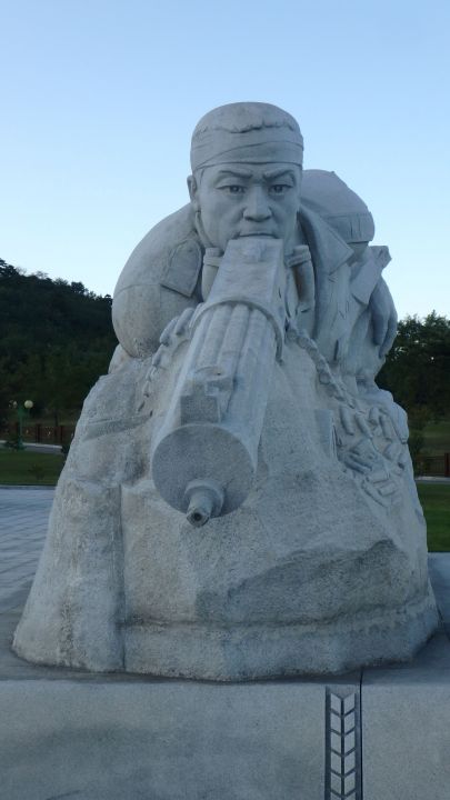 Однако есть и другие отличительные черты в мемориальной памяти в Северной Корее и в ее значительно более огромном северном соседе. Речь о военных памятниках, или, точнее, там, в КНДР, памятниках войны 1950–1953 года, в которой с одной стороны действовала Корейская народная армия — Чосон инмингун, усиленная большим корпусом китайских коммунистических "добровольцев" и поддерживающих их частей Советской армии в основном авиации, и артиллерии. Простите, если кому-то это напомнило современные события в Сирии или другие события в горячих точках планеты, где "случайно" в перехваченных переговорах слышится русская речь — все аналогии автор оставляет на вашей, читатель, совести и информированности. С другой стороны — вооруженные силы Республики Корея, США, Великобритании, Австралии и ряда других стран в составе миротворческих сил ООН и в соответствии с мандатом ООН. Война была кровавой, с переменным успехом и большими жертвами с обеих сторон. Желающие могут посмотреть фильм Роберта Олтмана "M.A.C.H." (1969), но в нём, разумеется, основной рассказ о противоборствующей объединенным революционерам стороне, а вот о "нашей" т.е. революционной стороне, лучше всего рассказывают как раз памятники. Мемориал павшим героям КНДР 1950–1953 не является обязательным местом посещения, но я всем рекомендую. Первое, что бросается в глаза, — это огромные, как всегда в Северной Корее, памятники с отважными и абсолютно не мирными лицами реальных героев тех событий. Второе — поднимающиеся колизеумом ряды совершенно одинаковых белых мраморных плит с бронзовыми барельефными портретами и имена павших героев. Ни одной безымянной или безпортретной могилы. Впереди символический гроб, покрытый мраморным стягом, и автомат, конечно, Калашникова с военной корейской шапкой. Мемориал очень достойный, правда, количество живущих там сорок явно превышает количество людей. В противовес этому мемориалу на горе рядом с памятником летящему Коню — одному из основных символов Северной Корее, расположен мемориал Советским воинам, павшим за свободу КНДР. Обычный обелиск, увенчанный обычной пятиконечной бронзовой звездой, такой трудно не найти практически в каждом российском городе на запад от Москвы, и полное отсутствие имен! Действительно, зачем имена героев, жертв, если вся слава принадлежит пославшей их туда умирать партии, правительству, командованию, присваивающим себе всю славу. Помните, есть известная советская формула памяти "Имя твое неизвестно, подвиг твой бессмертен!" — тем, кто забыл, готов напомнить — строчка из многократного автора советских и нынешнего российского гимна С. Михалкова. Прилежный почитатель власти точно уловил и выразил главнейший постулат — имя твоё вообще никому не интересно, а подвиг принадлежит Родине и, значит, бессмертен. Вот такая неожиданная разница ментальная между Северной Кореей и СССР и современной Россией. В чью пользу, пусть каждый решает сам...