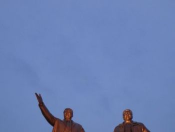 Несколько слов о монументах и памятниках. Их в Северной Корее много, особенно в Пхеньяне. Главным, если не считать комплекс Дворца Солнца Кумсусан, превращенный в Мавзолей, вначале для Ким Ир Сена, а потом и для его сына Ким Чен Ира. Перед этим он был зданием, где работал Великий и Светлый Чучхе товарищ Ким Ир Сен. Мавзолей является грандиозным памятником-комплексом Отцу и Сыну. Самым же доступным, величественным и почитаемым корейцами памятником в центре Пхеньяна является сделанный из сияющей бронзы и возвышающийся над простым человеком на высоту многоэтажного дома (думаю, как минимум 3-4 этажа), окруженный двумя грандиозными стелами из красного камня с многочисленными фигурами свершавших под их руководством боевые и трудовые подвиги корейцев комплексе с двумя вождями во главе. К монументу ведет ещё и широченная высокая лестница. Знаменитая Потемкинская лестница выглядела бы узкой на фоне этой своей более современной сестры. Поднявшись и положив в установленных сбоку местах свой букет или венок, в центре место только для венка от внука и сына маршала Ким Чен Ына, все должны обязательно поклониться. Исключений — быть не может! Этот ритуал повторяется везде, где стоят статуи или портреты Вождям. В зависимости от своих трудовых, учебных, научных или боевых успехов рядовой гражданин обычно вместе с коллективом своих коллег удостаивается чести возложить цветы и посетить Мавзолей или Музей, неразрывно связанный с деяниями и идеями Вождей и поклониться их лику и их памяти. Чтобы читателю старшего возраста легче было бы это представить — подскажу, это все равно как если бы "скромная" усадьба Горки под Москвой в январе 1924 была бы превращена в Мавзолей, а Красная площадь осталась бы в том виде, в каком сформировалась до страшных событий осени 1917 года.