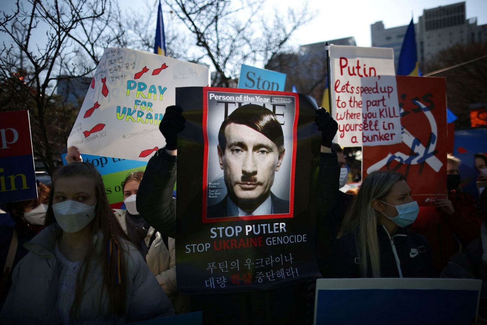 24 февраля Владимир Путин объявил о начале "специальной военной операции" с целью "денацификации и демилитаризации Украины". Его пресс-секретарь Дмитрий Песков добавил, что "в идеале нужно освободить Украину, зачистить ее от нацистов". После этого Россия начала наносить авиа- и артиллерийские удары: в российском Минобороны утверждают, что атакуют только военные объекты. При этом власти Украины сообщают о жертвах среди мирного населения. Западные страны объявили о санкциях против России, Европа решила закрыть свое воздушное пространство для российских самолетов. Люди со всего мира выступают против российской агрессии и выражают солидарность с Украиной.