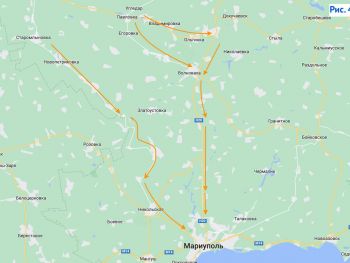 Сложные коммуникации — дорог куда меньше чем на Мелитопольском направлении. И хорошая из них всего одна — Н20 (Рис. 4). Зато тут должно быть чуть меньше укреплений — но только на подходе к Мариуполю. Возле самого города строили отдельную линию обороны. Кстати, и в Мариуполе и Мелитополе есть аэродромы, так что тут паритет — оба варианта подойдут авиации Украины.